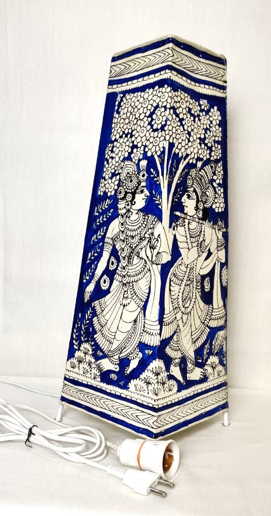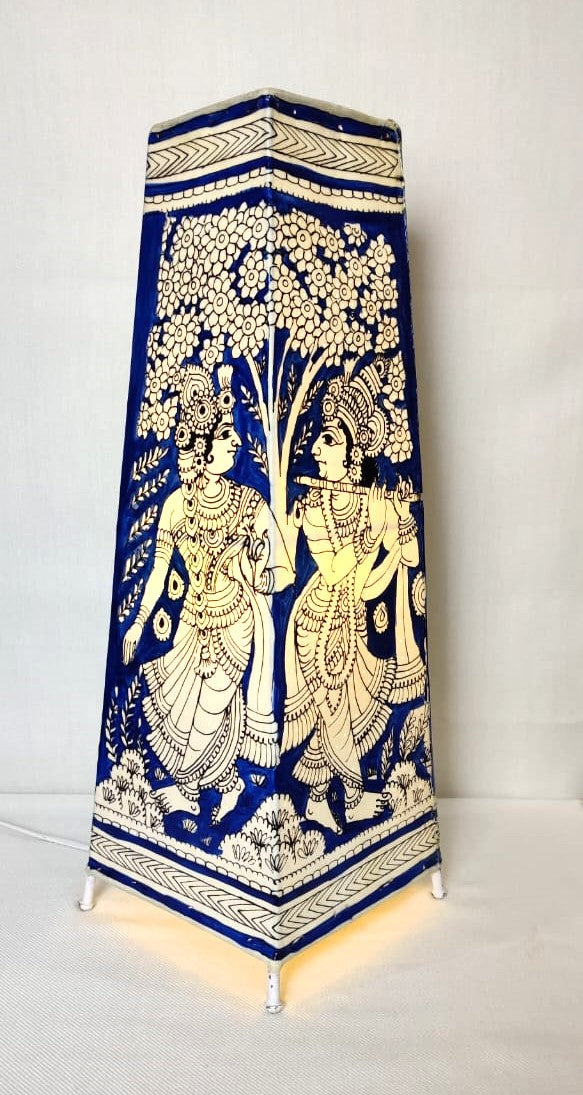 EchoCraft Andhra Handicraft Leather Square Table Lamp for Home Decoration | Handmade Traditional Art Lamp with 6 Feet Bulb Holder | Ethnic Leather Craft Décor Light (16 inches)